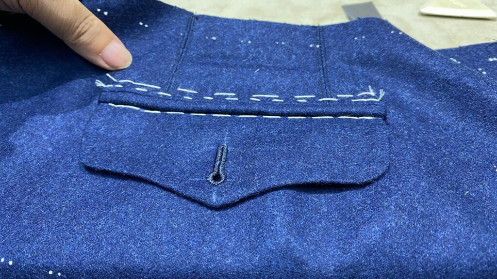 こう言ったフラップを作ったり、ポケットを作ったり、パンツがジャケットやベストの要素の収縮版なので、パンツが出来たら、そこそこジャケットやベストも作れるようになります![]()
