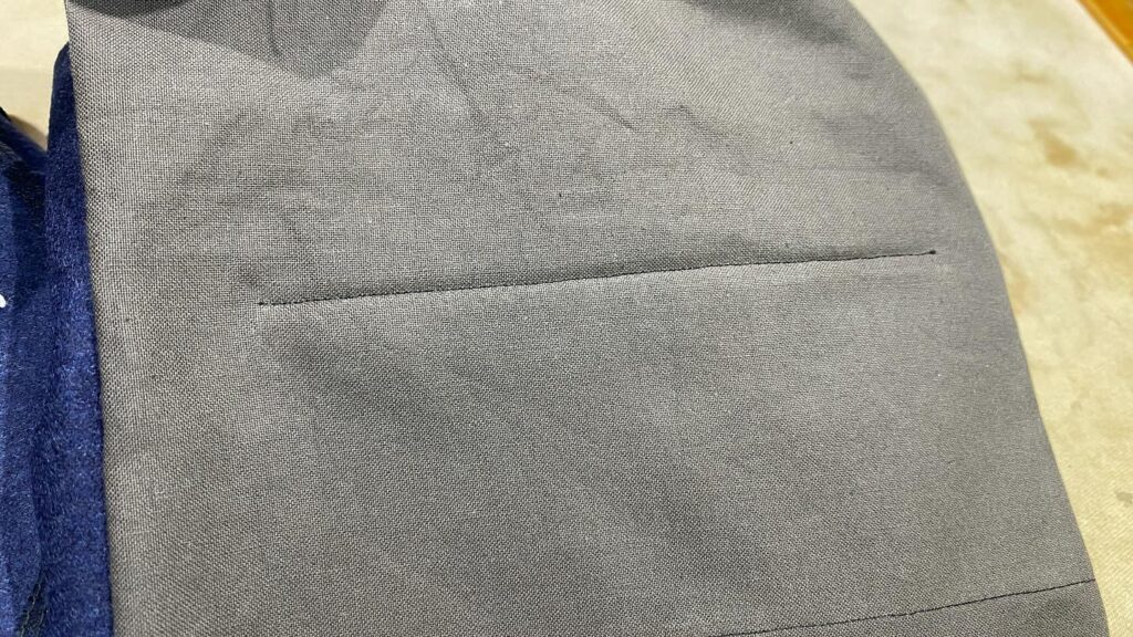 ポケット付ける前にした『くせ取り』ですが、ちゃんとくせ取りしてたら、ポケット付けた後でも、しっかり残ってるでしょう😊