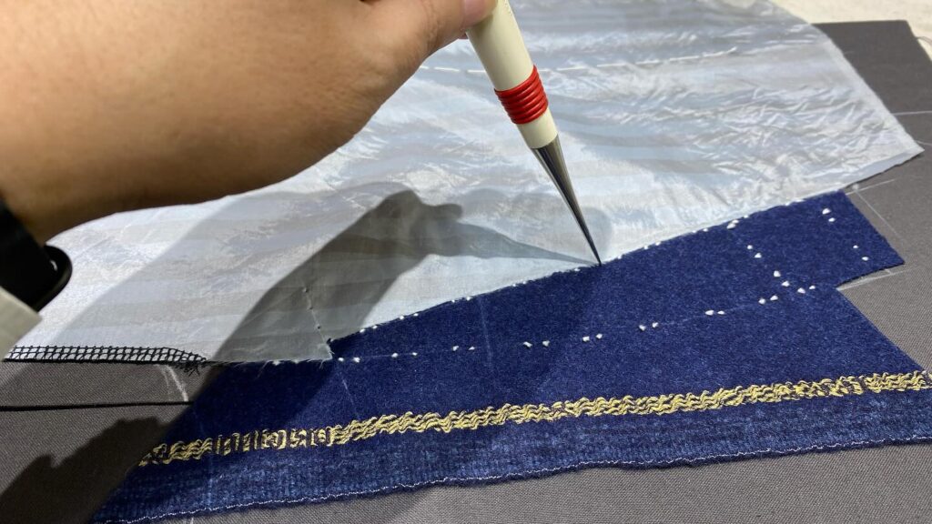 前のポケットも、袋は実寸+1cmで断ちます![]()